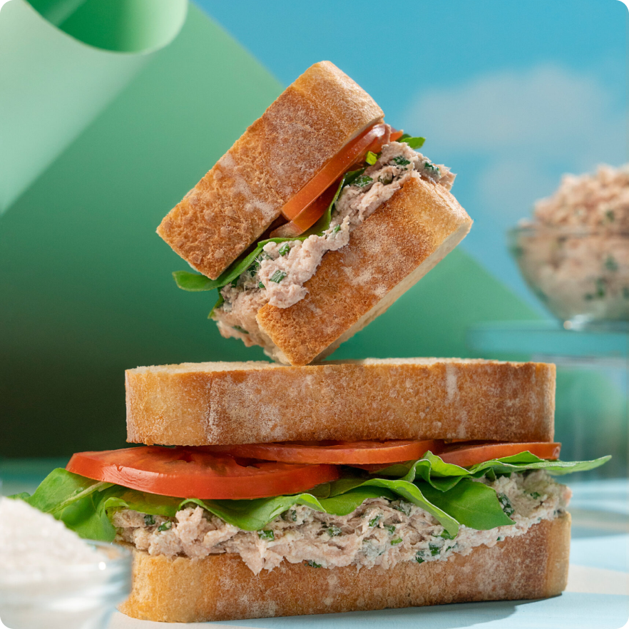 - En un tazón pequeño, combiná el atún escurrido, el queso ricotta y el azúcar Doña María Blanco de Plantación. Mezclá bien hasta obtener un paté homogéneo. Finalmente, incorporá el cebollino picado.